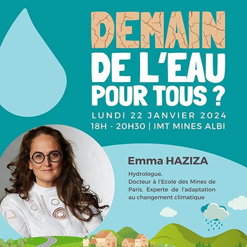 L’école des Mines Albi accueille une conférence intitulée « Demain, de l’eau pour tous ? ». Organisée par le Pôle territorial de l’Albigeois et des Bastides, elle fait intervenir Emma Haziza, hydrologue, Docteur de l’École des Mines de Paris, experte de l’adaptation des territoires au changement climatique, fondatrice et présidente de la société et du centre de recherche Mayane.