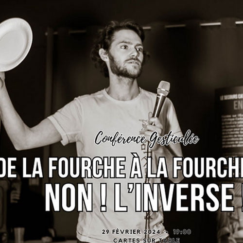 Conférence gesticulée « De la fourche à la fourchette… NON ! L’inverse ! » par Mathieu Dalmais