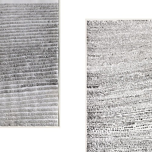 Ses formats sont souvent excentriques, très petits, par exemple, ou démesurément allongés – pouvant atteindre une dizaine de mètres pour quelques centimètres seulement de largeur. On pourra aussi y voir Les œuvres de Pierre Soulages léguées par Pierrette Bloch au Centre Pompidou. Ces œuvres des années 1950, peintures sur toile ou sur papier, sont restées accrochées dans son salon parisien pendant près de soixante-dix ans, manifestant avec constance la proximité amicale des deux artistes.