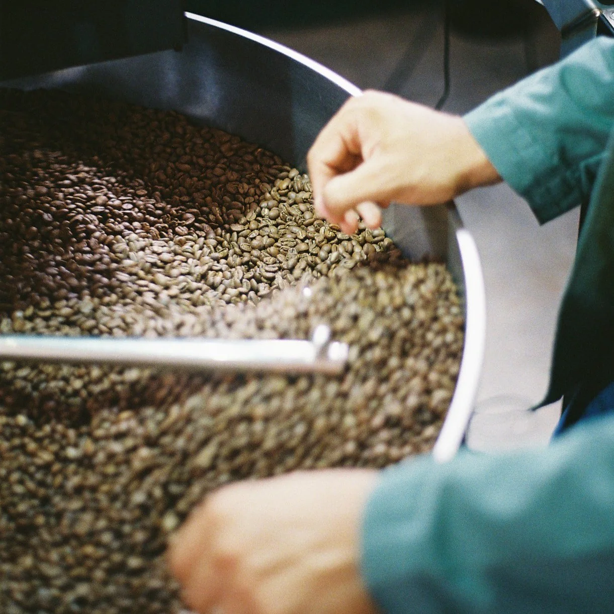 « Ici, on pratique la torréfaction lente. Comme chez la plupart des torréfacteurs artisanaux », souligne Carlos. Un temps de développement progressif et une température adaptée évite d’agresser le grain et permet de développer une belle palette d’arômes pour parvenir à l’équilibre voulu. Ce temps long, c’est la principale différence avec la torréfaction industrielle, dont l’objectif de réduction des coûts conduit à des torréfactions ultra-rapides (parfois moins de 2 minutes dans des méga-tambours de 300 kg poussés jusqu’à 1000°C). Résultat ? Un café à l’apparence trop noire, presque huileuse, laissant en bouche une forte amertume ou des notes de pain trop longtemps oubliés dans le toaster. Ce qui incite plus à ajouter du sucre… Pour régler ses paramètres de torréfaction, Carlos s’appuie sur ce qu’il connait du terroir où a poussé le grain, de la variété du café, des méthodes de culture et de séchage employées.