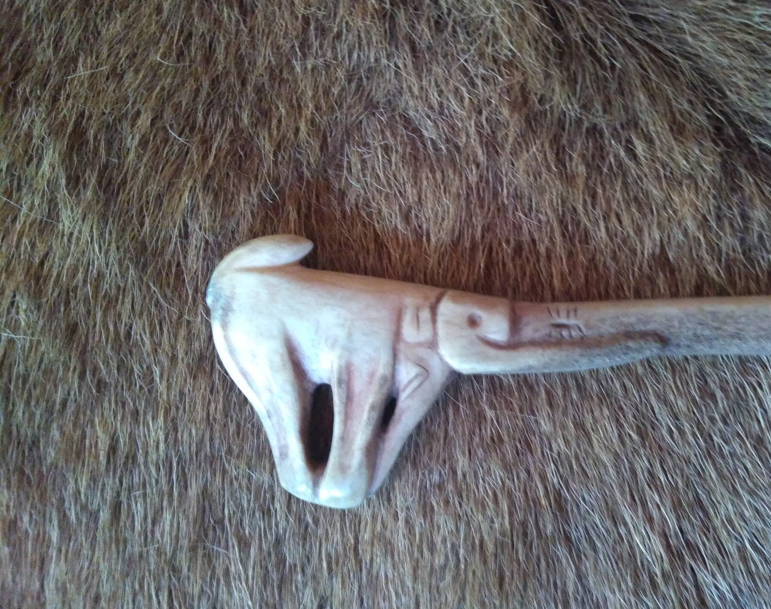 Par exemple, l’histoire de ce propulseur préhistorique (permettant de lancer de fines flèches, appelées “dards” jusqu’à plus de 200 m !) représentant un mammouth. Découvert à Bruniquel, cet objet inédit est aujourd’hui conservé au British Museum de Londres. C’est Bernard qui l’a reproduit, car c’est également l’une de ses spécialités : il recrée du mobilier (comprenez des objets que l’on peut déplacer) dans les matériaux et avec les techniques de l’époque. Nombre de musées font appel à lui pour cela.