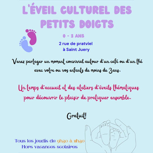 Pour les parents avec leur(s) enfant(s) de moins de 3 ans, le Centre social de St-Juéry propose un moment d’échange autour d’un café/thé et des ateliers thématiques d’éveil.