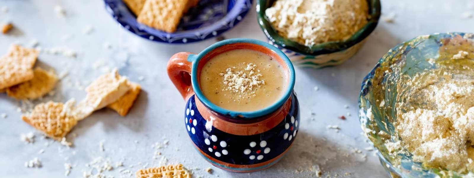 L’atole est une boisson traditionnelle de la cuisine mexicaine, fabriquée à base de « masa harina », le type de farine de maïs utilisée pour faire des tortillas de maïs, une farine précuite dite « nixtamalisée ». A défaut, on utilise une farine de maïs classique, voire même de la maïzena (amidon de maïs) si vous n’avez que cela sous la main… Datant de l’époque des Aztèques et des Mayas, l’atole est traditionnellement bu lors des célébrations du Dia de los Muertos, le jour des Morts, une célébration qui a lieu les 1er et 2 novembre pour célébrer et se souvenir de ceux qui sont décédés.