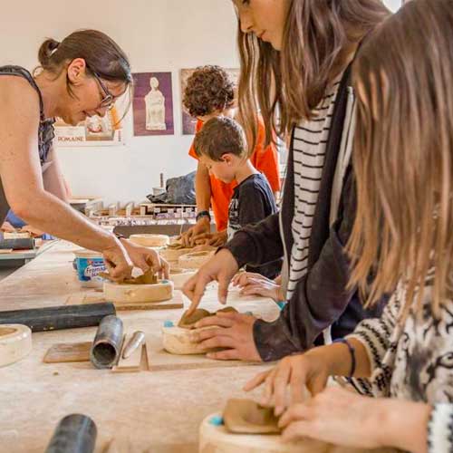 Ateliers mosaïque, monnaie, lampe à huile, fresque, etc