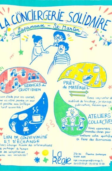 Créée par les habitants du quartier Lapanouse, la Conciergerie offre l’accès à une bricothèque, un espace café ainsi qu’un panel d’ateliers gratuits et de services à coûts adaptés. Ouverte à tous, elle souhaite devenir un creuset de lien social.