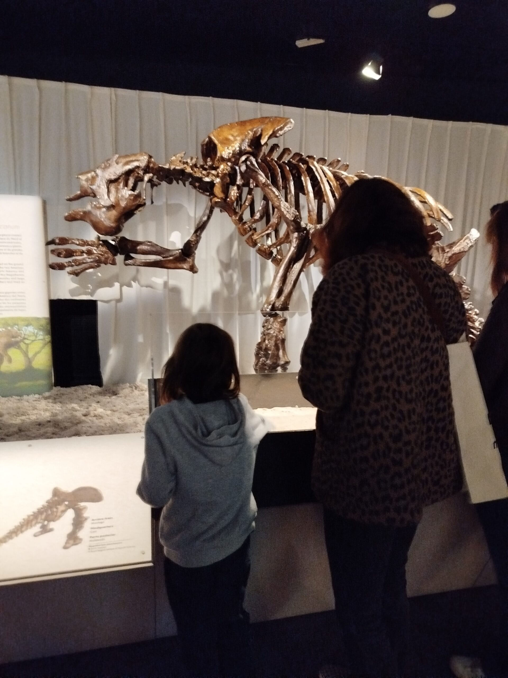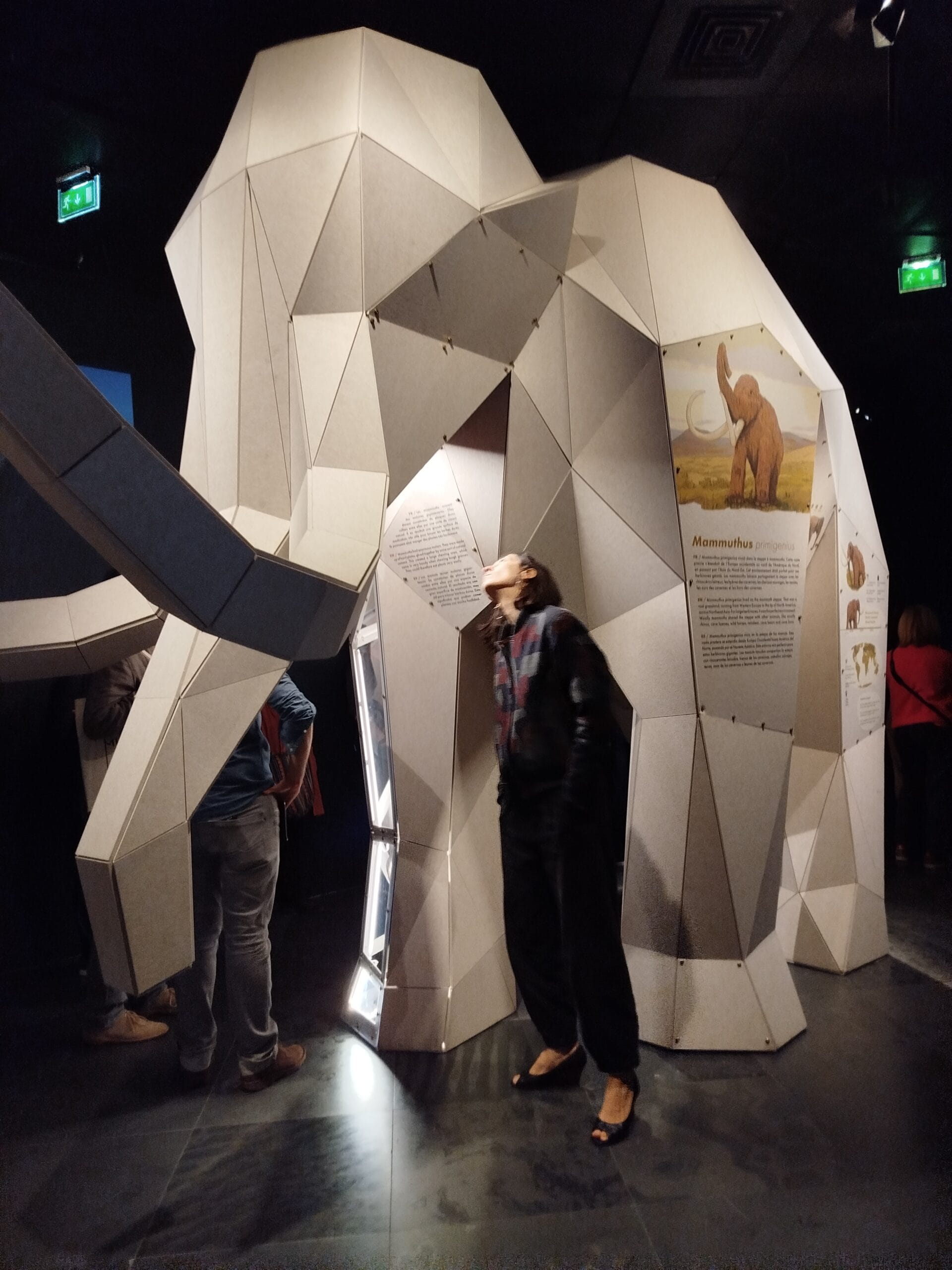 Réponse : « Cette extinction massive a permis le développement de petits mammifères qui avaient jusque-là vécu dans l’ombre des grands, raconte Laura. Ils ont progressivement conquis les habitats laissés libres, se sont diversifiés et certains ont grandi jusqu’à atteindre des proportions gigantesques ». Le Muséum a donc travaillé à partir de créatures bien réelles. A partir de dents, mandibules, vertèbres, côtes et autres ossements trouvés dans des fouilles internationales, les visiteurs découvrent la reconstitution de huit espèces méconnues du Cénozoïque (dernière ère géologique marquée par la formation des Alpes et des Pyrénées, entre autres) à travers 3 squelettes et 5 sculptures titanesques, à taille réelle, en bois. La scénographie invite également à nous mettre dans la peau d’un paléontologue et à mener nos propres recherches via des dispositifs interactifs et multimédias. Des vidéos reconstituent des scènes quotidiennes de l’époque.
