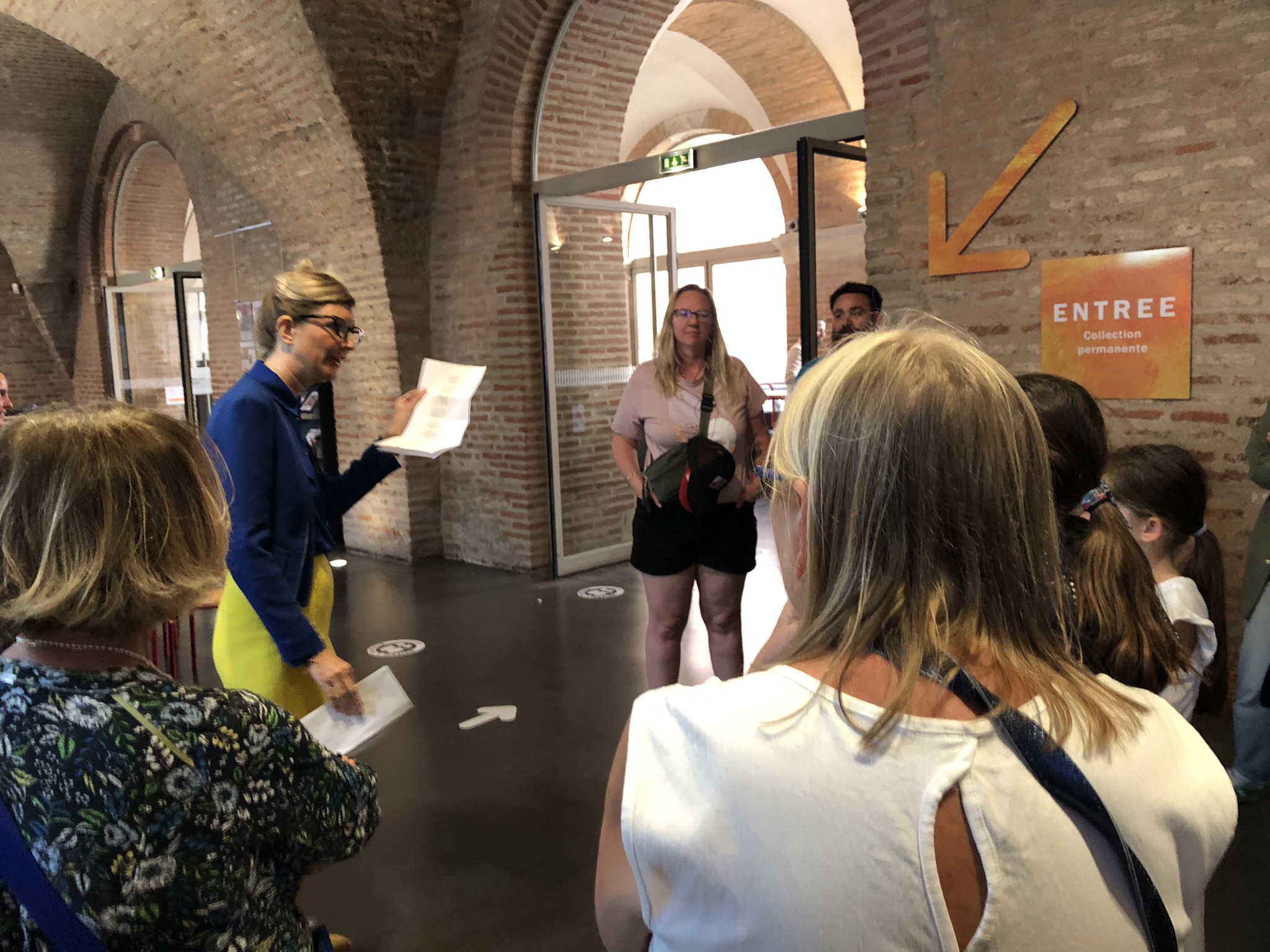 Son introduction, drôle et pince-sans-rire, est interrompue par un gardien du musée qui lui remet un pli urgent. Elle nous le lit, c’est écrit en vers, on comprend vaguement qu’il faut libérer quelqu’un… ou sa parole. Mais bon, elle est bien là pour nous faire la visite alors elle range la missive dans sa manche pour continuer, quand une dame dans le public l’interrompt.