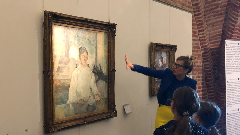 Elle nous accueille en jupe droite jaune citron, veste bleu Majorelle, lunettes en pointe et baskets… Elle, c’est Camilia, la guide conférencière qui nous accueille le 21 septembre au Musée Toulouse-Lautrec pour une visite « déjantée ».