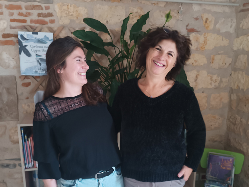 Légende photo : Rafael (à droite) et sa collègue Emilie Petoux, responsable de la médiathèque de Vaour.