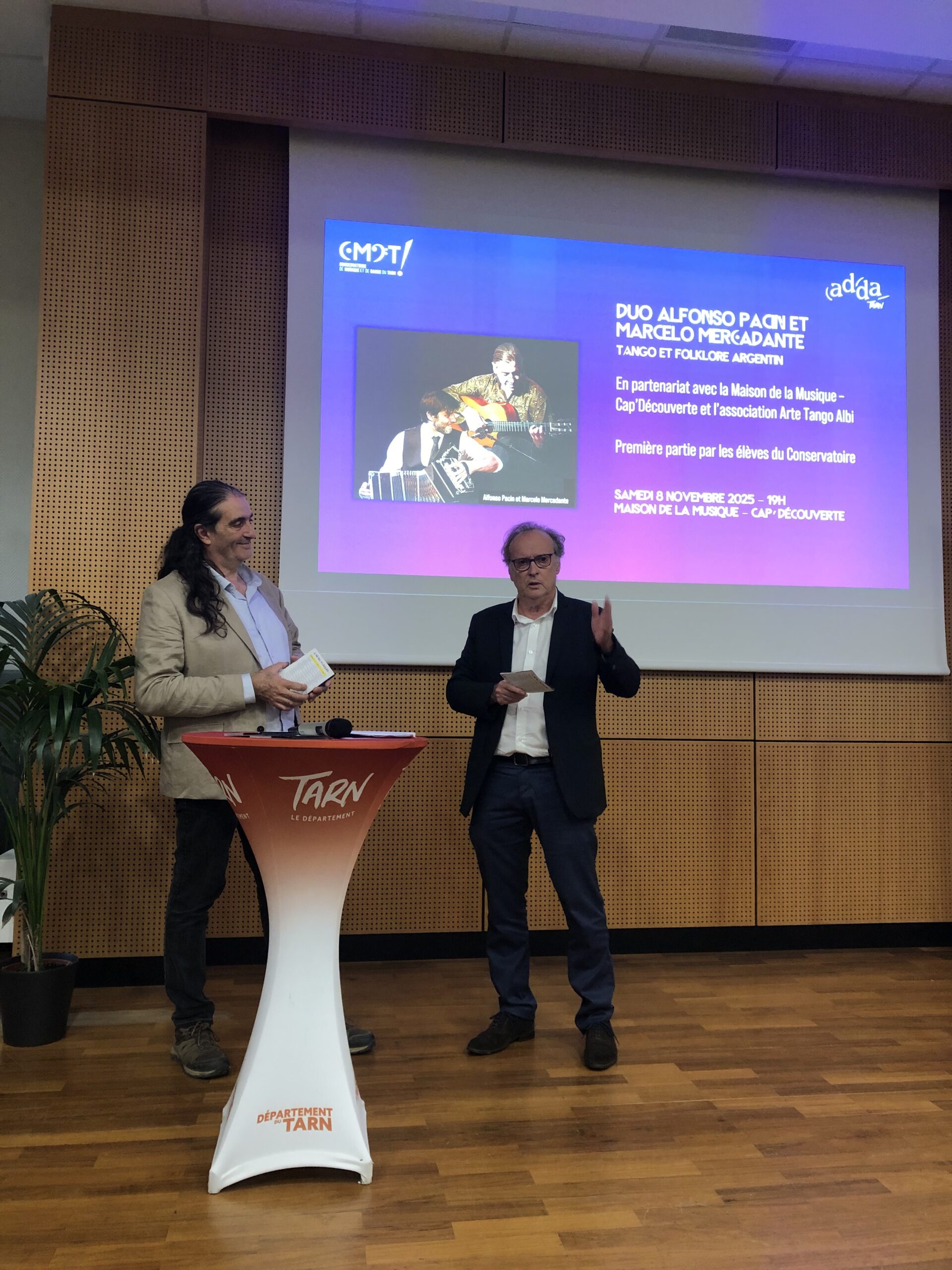 La saison début par un concert de musiques argentines, porté par deux pointures : Alfonso Pacin (violoniste et guitariste) et Marcelo Marcadante (bandonéoniste). Un spectacle offert, et cela se passe à la Maison de la musique.