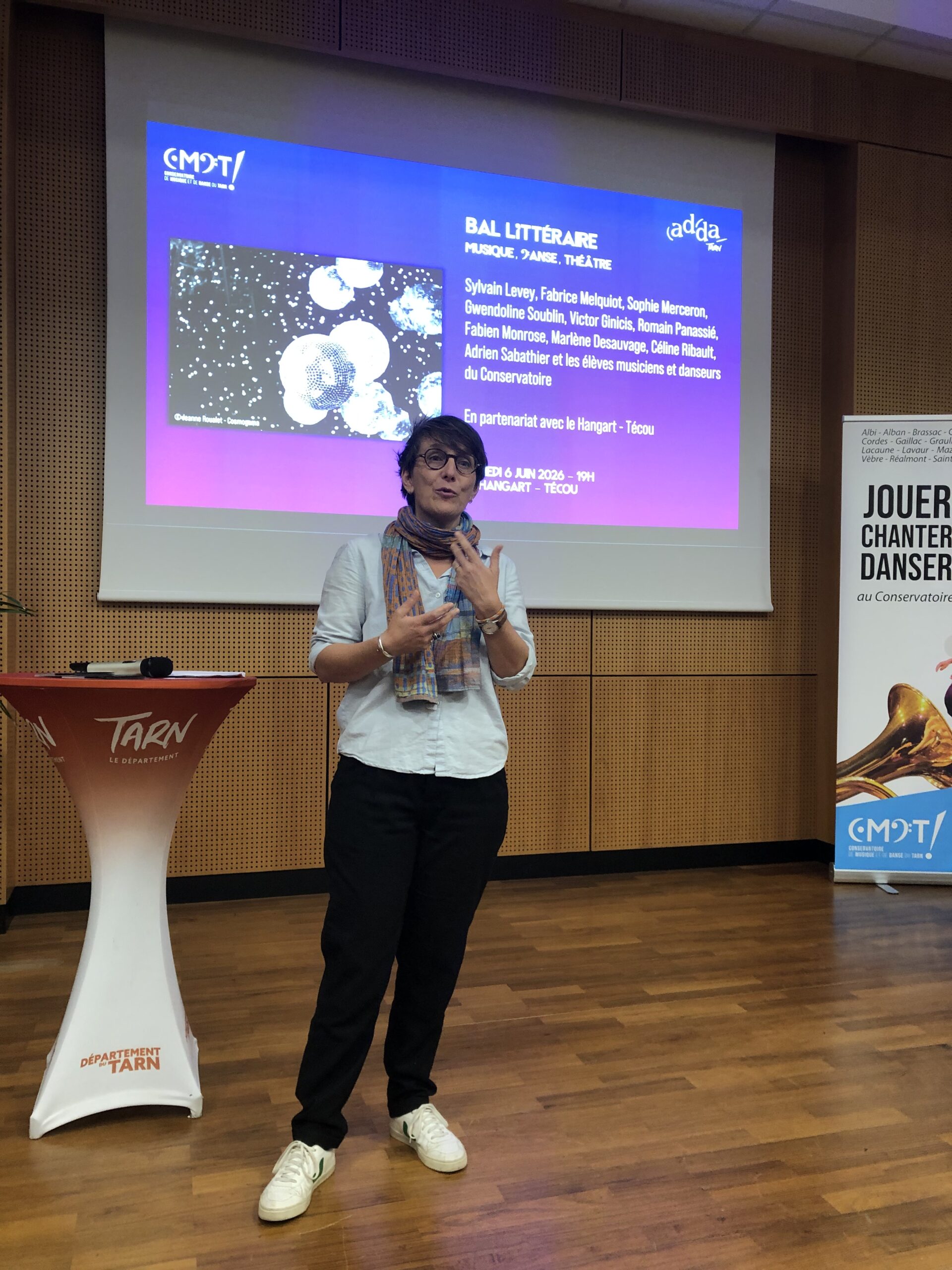Le reste de l’année propose encore 5 autres rendez-vous à découvrir ici et finira par un Bal littéraire. Imaginé par La Coopérative d’Écriture, il s’agit d’un évènement festif à mi-chemin entre la littérature, la musique et la danse. Ce bal réunit un groupe d’auteur·rice·s devant composer une histoire en huit épisodes à partir d’une playlist de huit tubes. Le jour J, les auteurs livrent leurs mots et la playlist au public, en l’invitant à écouter sagement les textes et à danser follement en musique. Un Bal Littéraire, c’est 1h30 de fièvre littéraire et festive, une performance unique, éphémère et toujours euphorique qui se poursuit par un DJ set. L’ADDA propose à plusieurs groupes d’amateurs (en théâtre, danse, musique et chant) de participer à cette soirée aux côtés des artistes invités ! « J’ai découvert cette pratique il y a 20 ans dans le Lot, souligne Marie Hallé, chargée de mission à l’Adda. J’ai trouvé ça génial, et je suis heureuse que ce projet voie le jour dans le Tarn. »