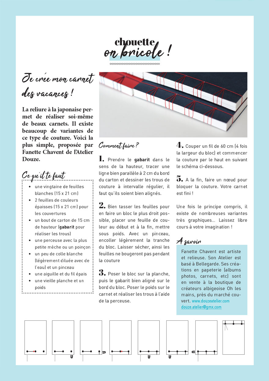 Suivez le pas-à-pas de Fanette Chavent de l’Atelier Douze (Bellegarde) pour vous initier à la reliure japonaise…