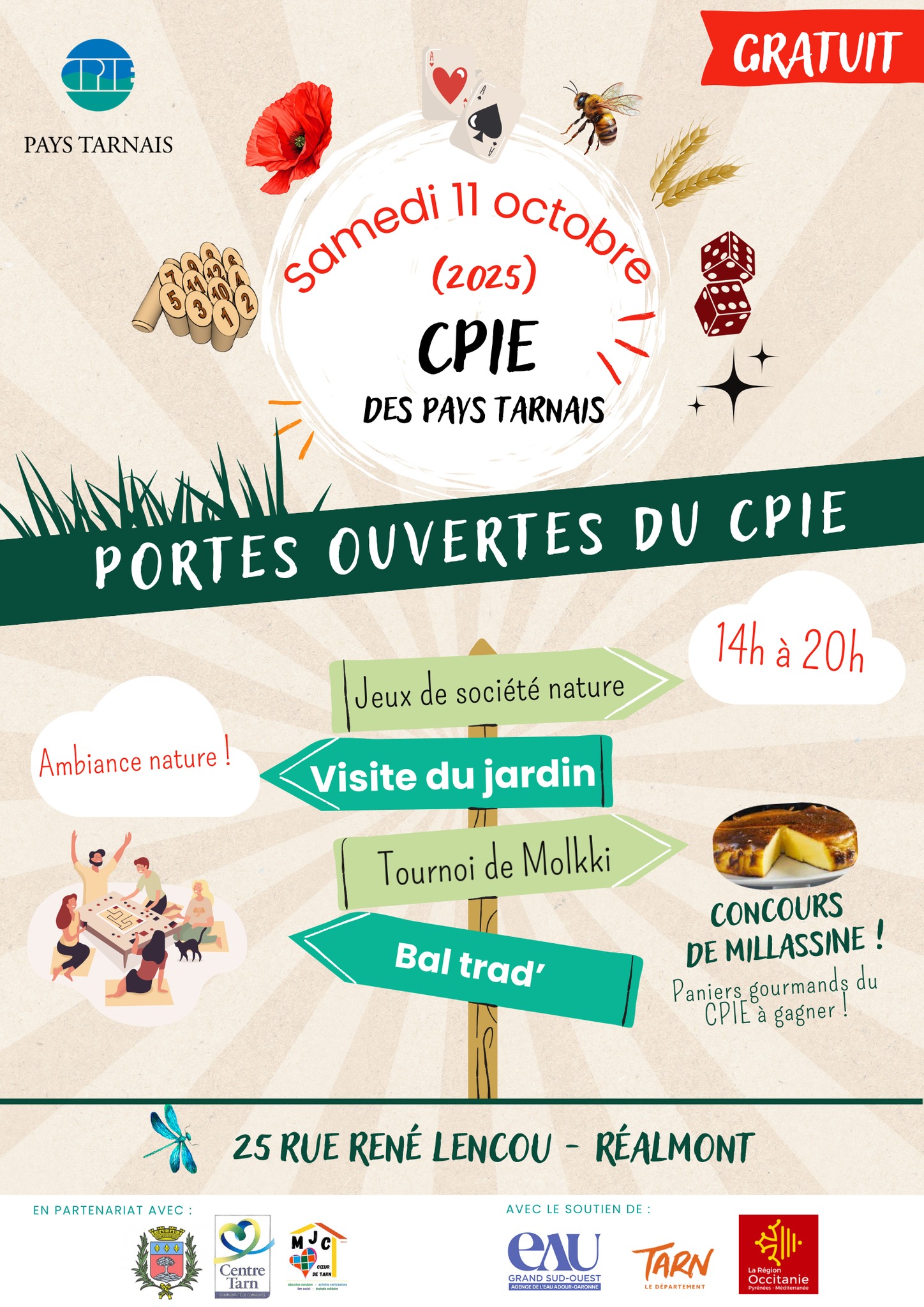 Elle s’est transformée cette année en « Drôle de planète », 1ère édition. Plusieurs évènements ont égréné le long de l’année, le prochain sera les journées portes ouverts du CPIE. Une après-midi proposée à Réalmont, entre visite du jardin, jeux de société nature, tournoi de mollki, concours de cuisine et bal trad !