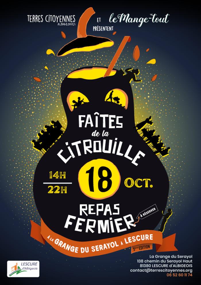 Pour sa 5e édition, la Citrouille revient avec quelques nouveautés puisque le magasin de producteurs et productrices Le Mange-Tout propose son repas fermier pour le soir (réservation obligatoire avant le 15 octobre au 06 07 82 31 28). Il y aura aussi comme chaque année les fameuses Olympiades maraîchères, le concours du craché de pépins de courge et bien sur l’atelier de sculpture de courges… venez avec la vôtre et faites-en une œuvre ! Cette année en plus : atelier bombes à graines, jus de pommes chaud et pain perdu géant à la buvette…