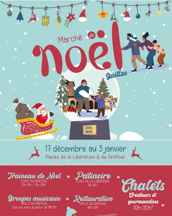 Le marché de Noël de Gaillac sera lancé le 17 décembre. Traîneau du père Noël, patinoire, groupes de musique et restauration au programme ainsi que tous les stands de créateurs !